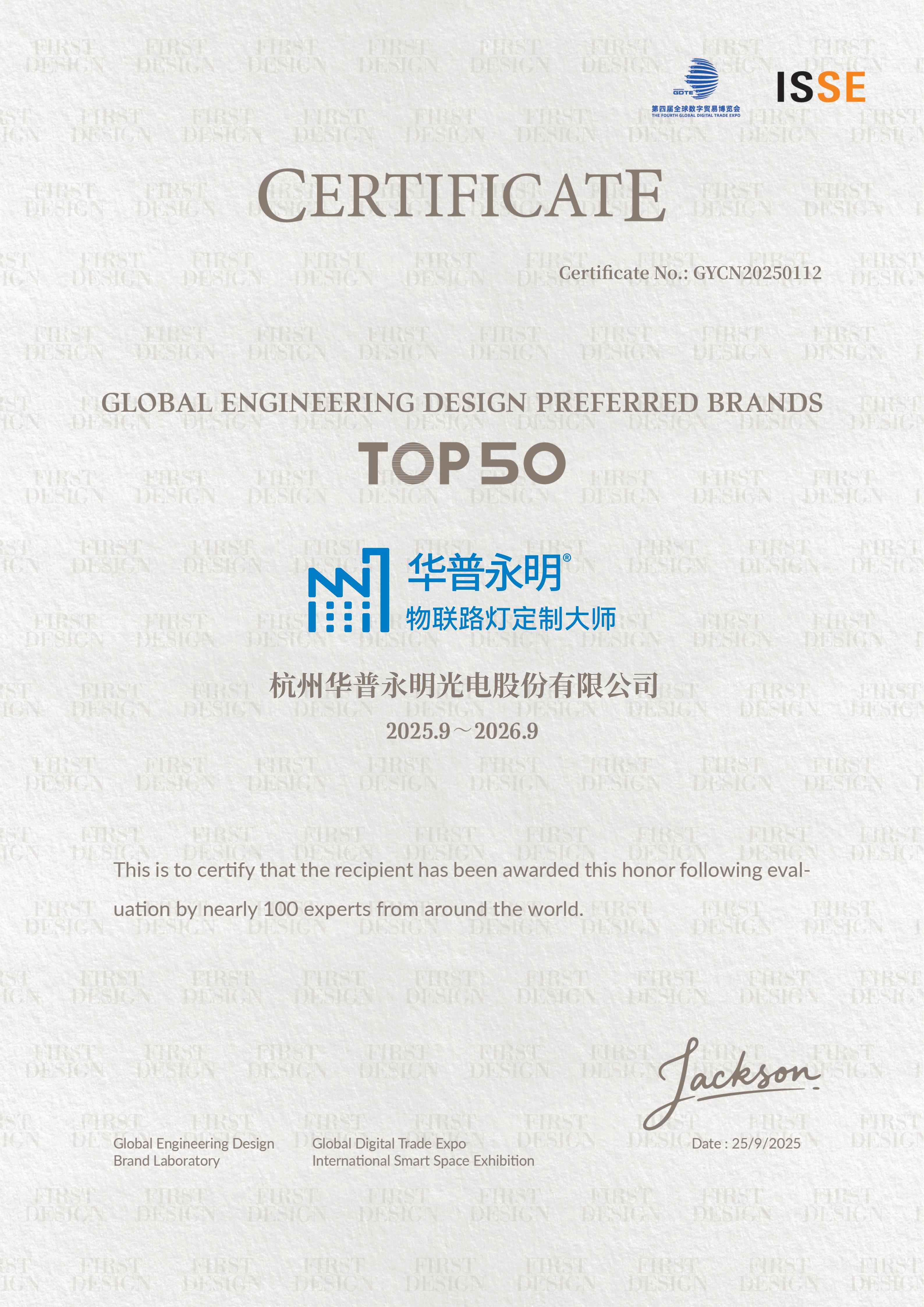 杭州華普永明光電股份有限公司(以下簡稱華普永明)榮耀登榜 "2025全球工程設計優選品牌 TOP50",充分彰顯其在專業室外照明領域持續引領行業創新的硬核實力。